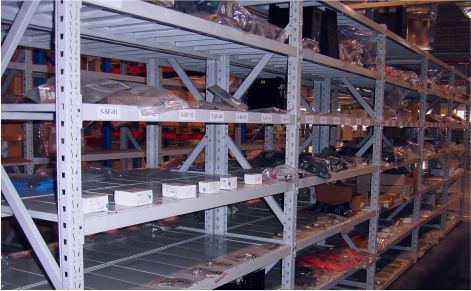 全組裝式結(jié)構(gòu),隨意組合,安裝、拆卸方便靈活。由中B柱片(兩立柱與橫斜拉桿)與P型梁采用鋼扣卡插連接,再鋪上鋼層板,結(jié)構(gòu)簡(jiǎn)單可靠。貨架的每一層可以調(diào)整50mm調(diào)節(jié)孔距,可根據(jù)貨物高低任意調(diào)節(jié)。主要由立柱、頂梁、托板和層板組成,主要特點(diǎn)為無(wú)螺栓連接,組裝、拆卸便捷(僅需要像皮錘就可以進(jìn)行組裝拆卸),外形美觀大方,適用于人工存取貨物情況,承載能力通常為150KG~350KG/層,可以滿足大部分使用要求。