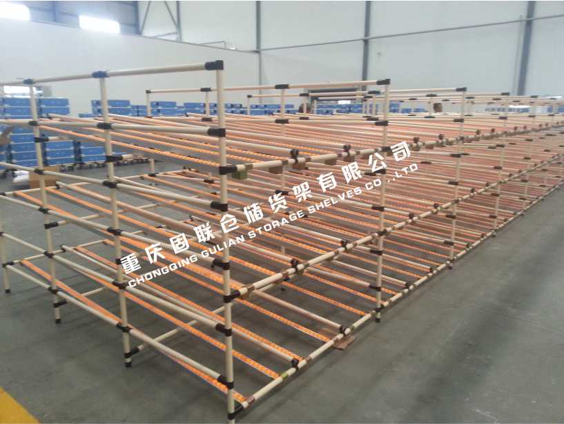 此库房重庆某汽车公司库房线棒式滑移货架。
