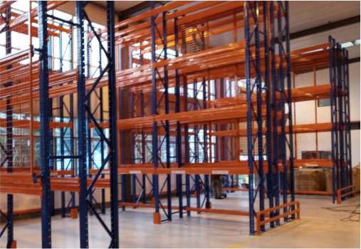 某食品公司重型立體貫通式貨架,排放整齊,外形美觀,大大提高了庫存能力,提高汽車工廠的6S管理。