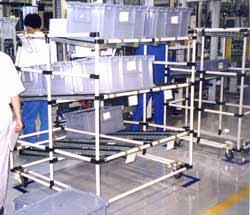 某汽車配件公司裝配線解決方案之--線棒貨架,四層,每條設(shè)置多條滑道,揀選方便快捷,提高了工作效率。